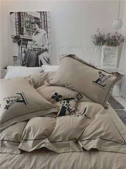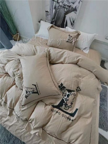 柔らかいコットン素材で、ロゴが付いた高級掛け布団カバー/ベッドカバー/枕カバー4セットを登場致します。