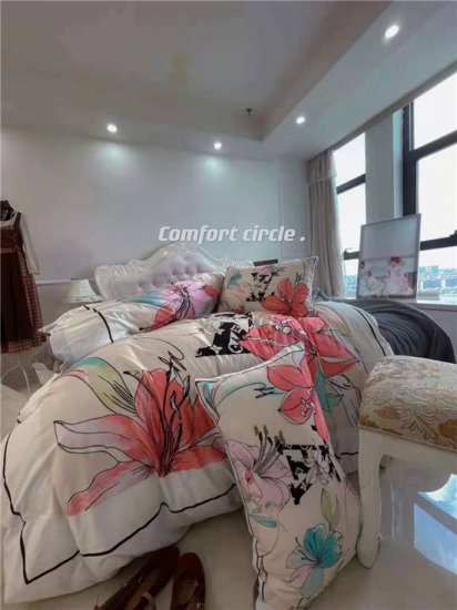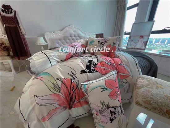 柔らかいコットン素材で、ロゴが付いた高級掛け布団カバー/ベッドカバー/枕カバー4セットを登場致します。
