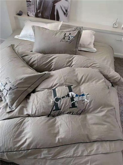 柔らかいコットン素材で、ロゴが付いた高級掛け布団カバー/ベッドカバー/枕カバー4セットを登場致します。