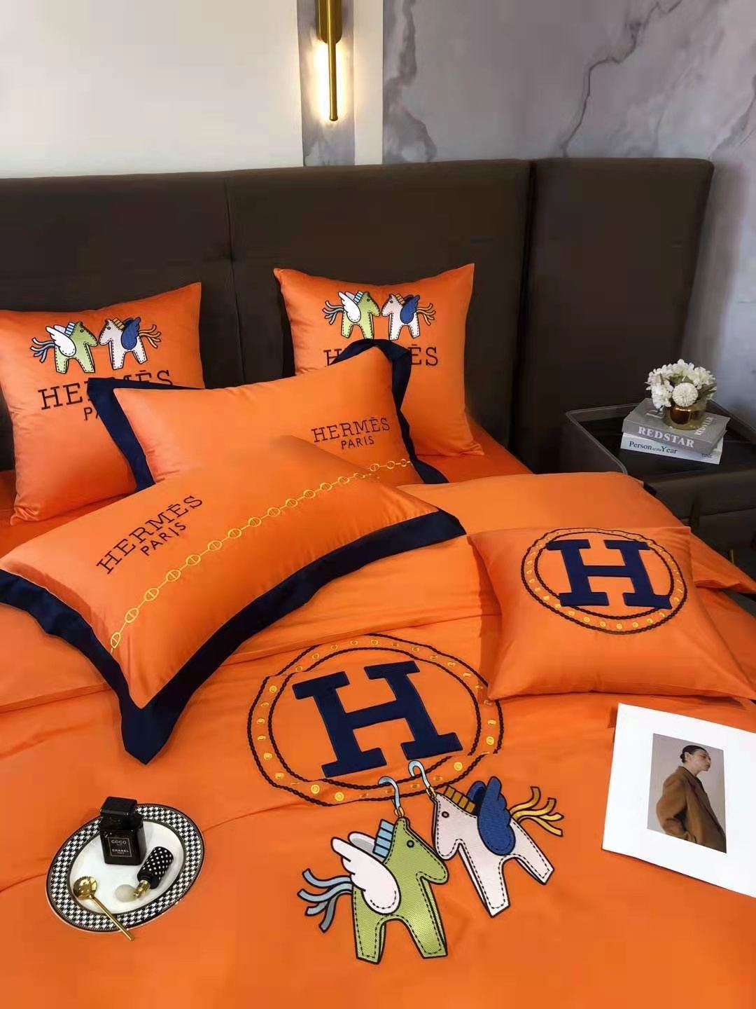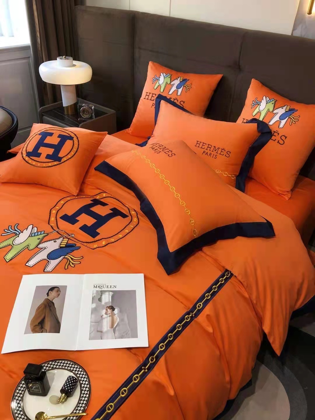 製品名 : エルメス 寝具 HERMES 2022新作 洋式 布団カバー ベッドシート 枕カバー 4点セット he220215p39