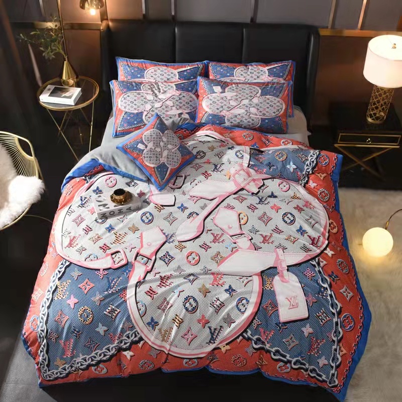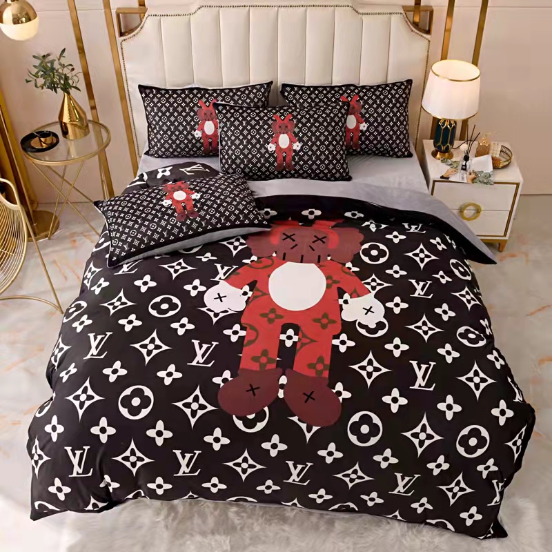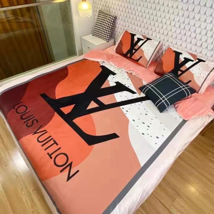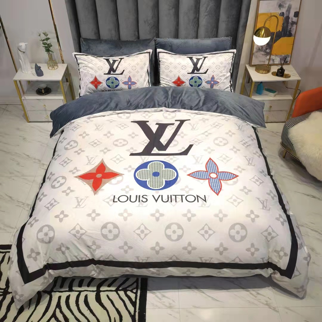 ルイヴィトン 寝具 LOUIS VUITTON 2021新作 洋式 布団カバー ベッドシート 枕カバー 4点セット ブランド寝具-1