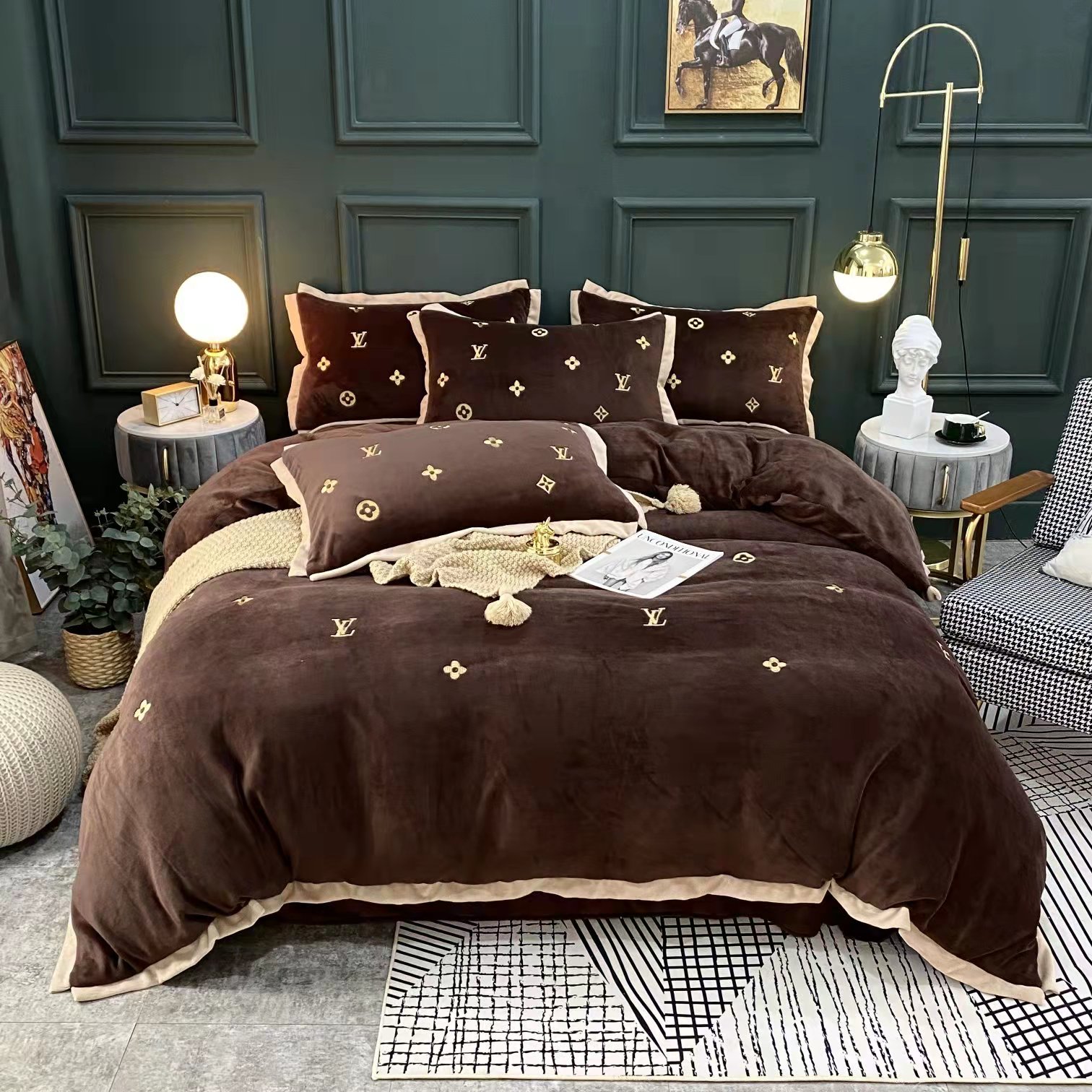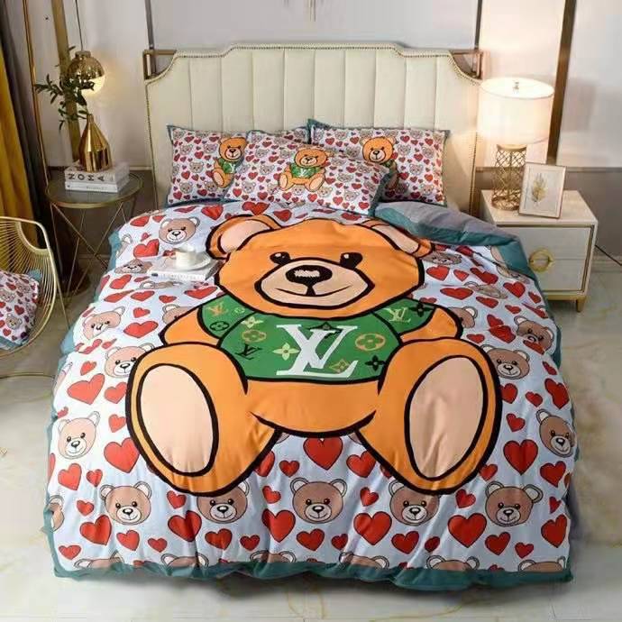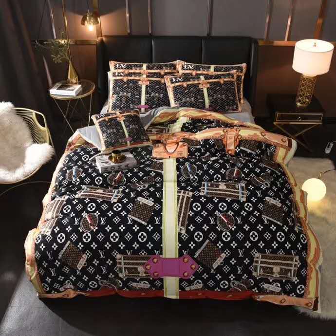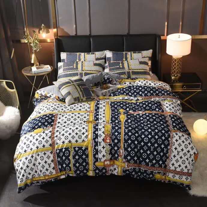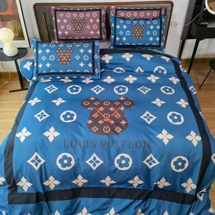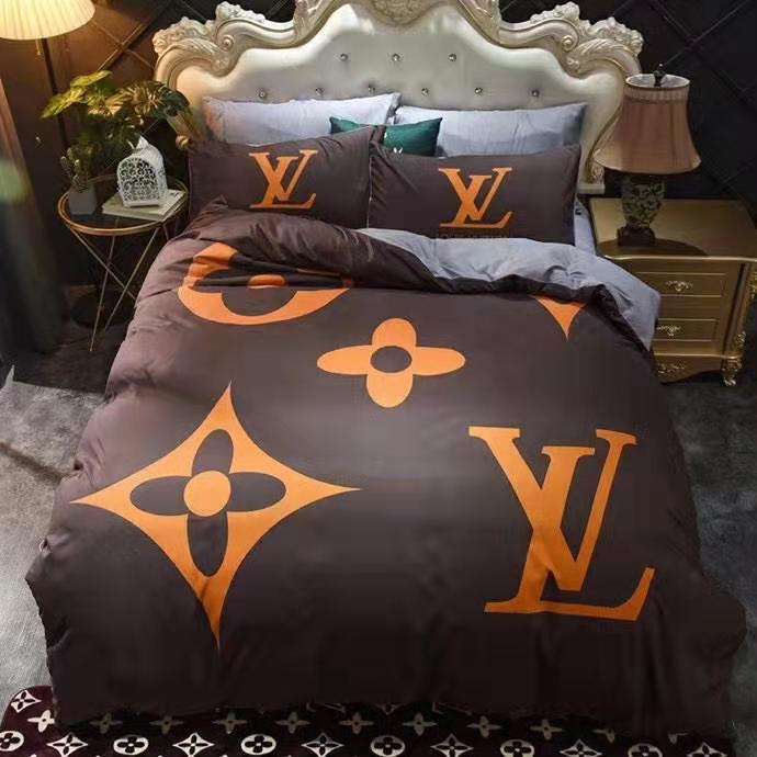 ルイヴィトン 寝具 LOUIS VUITTON 2021新作 洋式 布団カバー ベッドシート 枕カバー 4点セット ブランド寝具-1