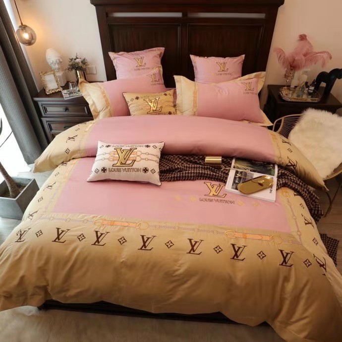 ルイヴィトン 寝具 LOUIS VUITTON 2021秋冬新作 洋式 布団カバー ベッドシート 枕カバー 4点セット 布団カバー ブランド 安い