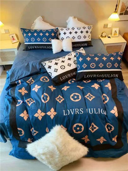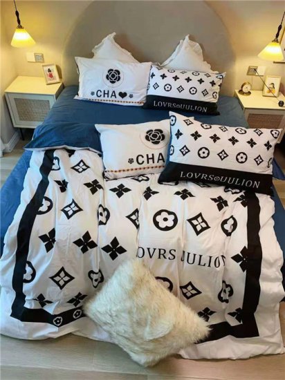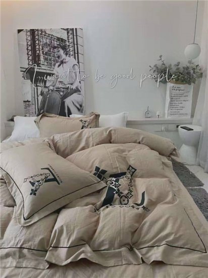 ルイヴィトン★LOUIS VUITTON 柔らかい 手触り 緞子 ベッド用 四点セットココマーク 寝具 布団セット/高級掛け布団カバー