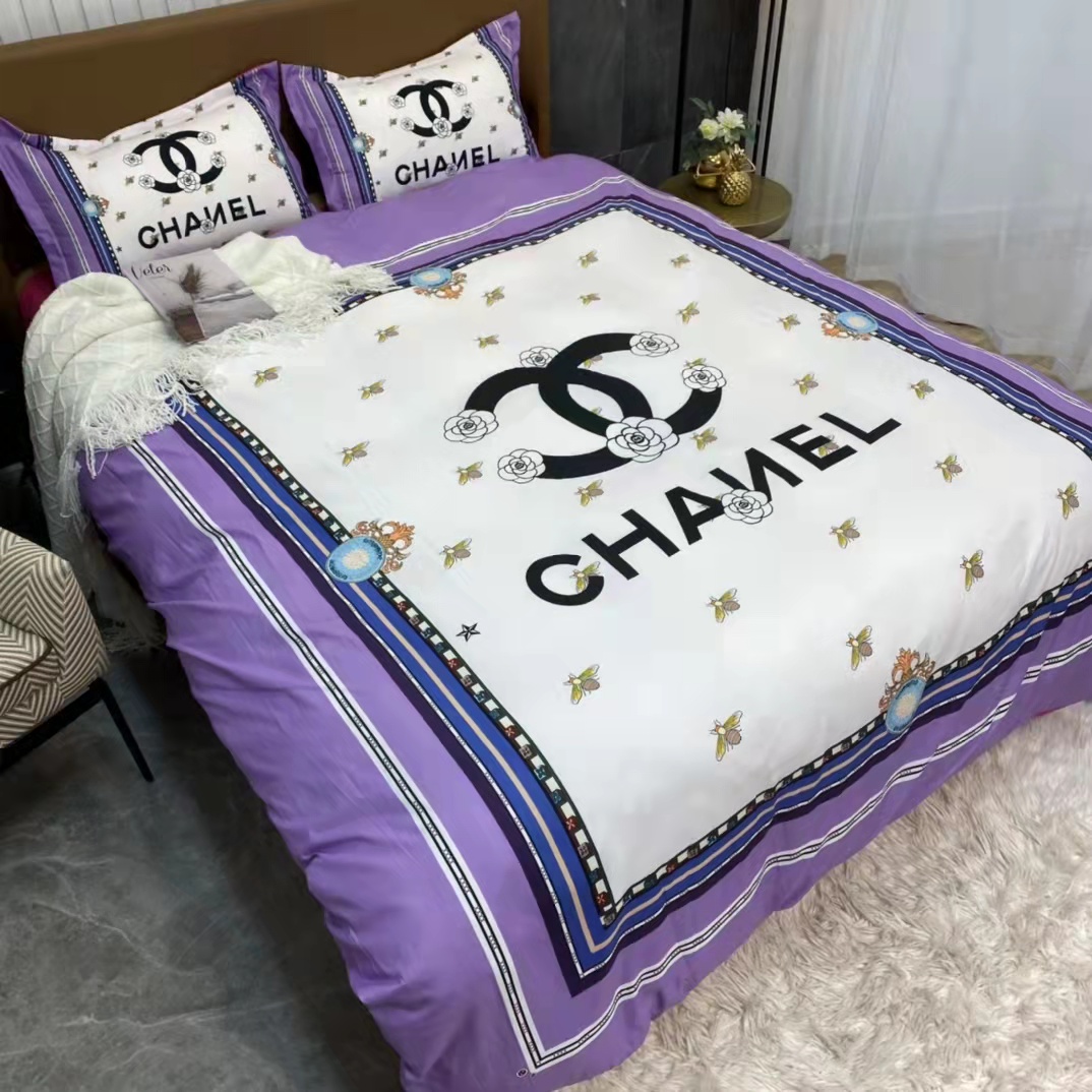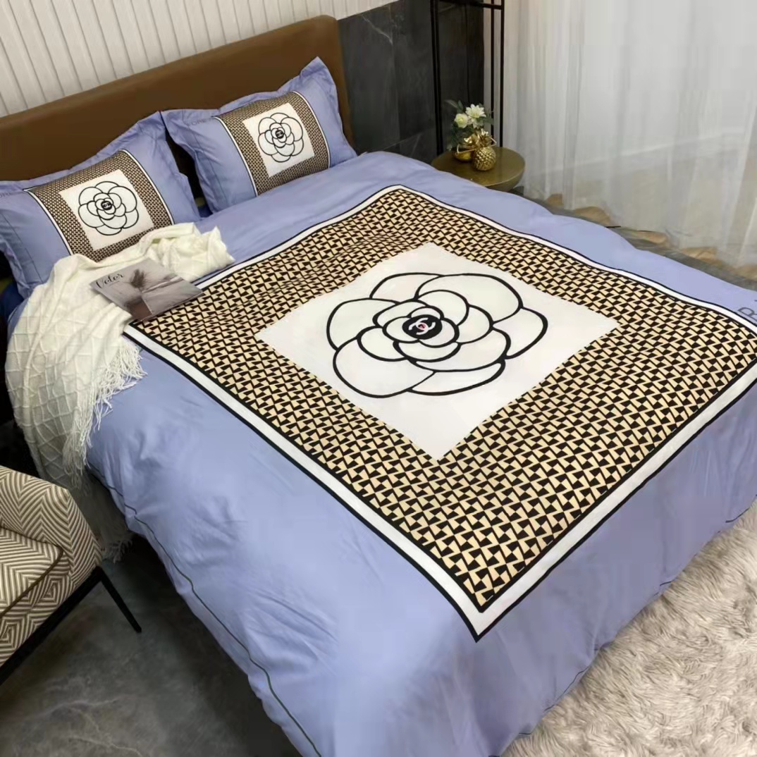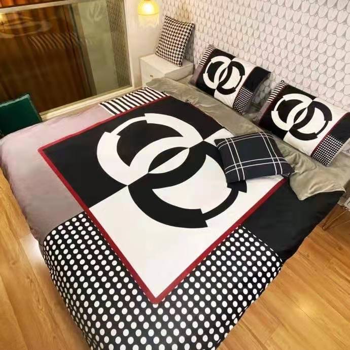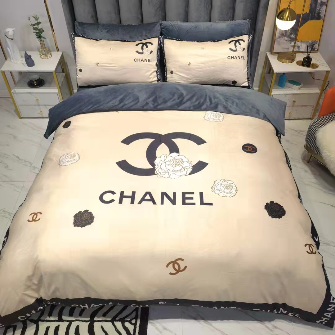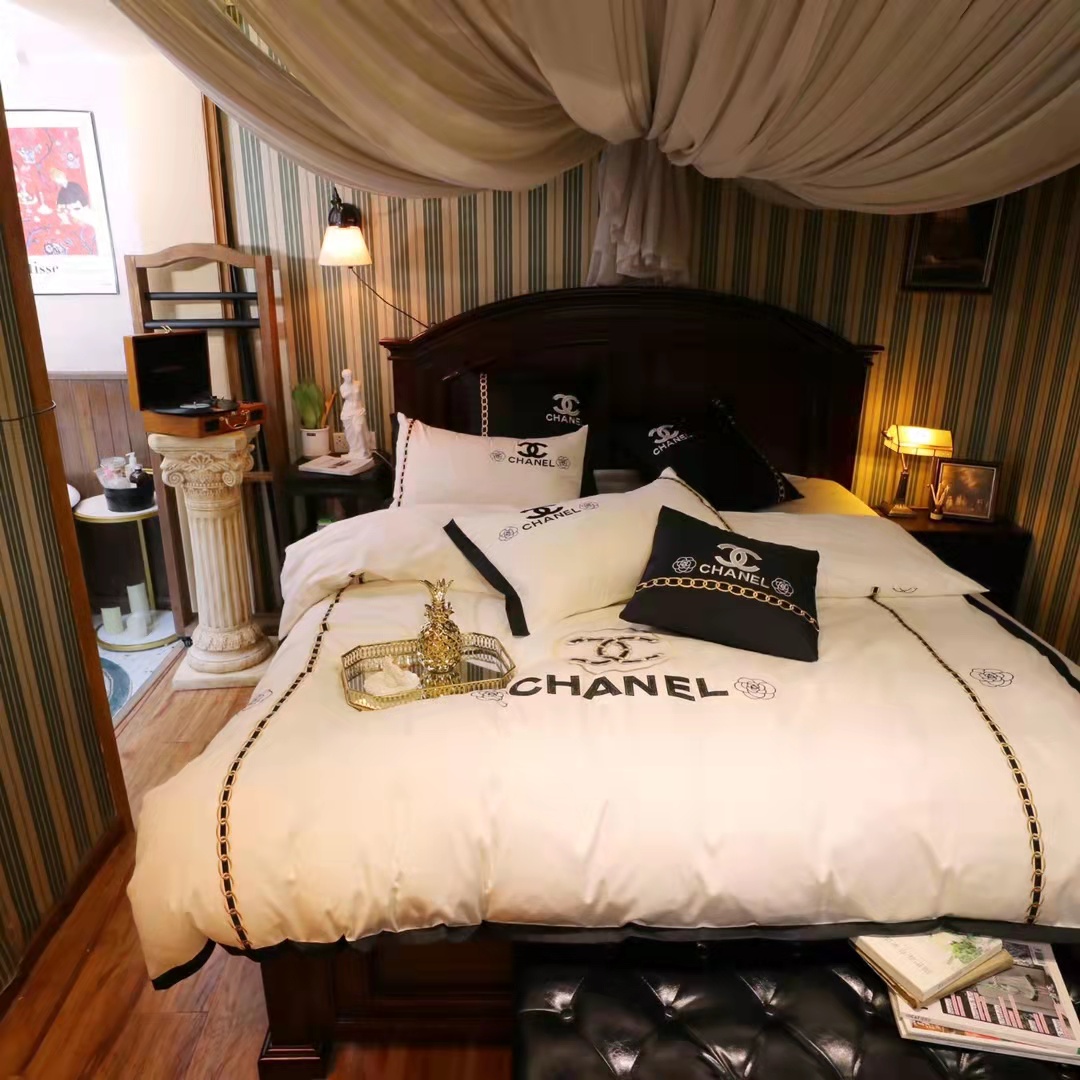 シャネル 寝具 CHANEL 2021新作 洋式 布団カバー ベッドシート 枕カバー 4点セット ブランド寝具-1