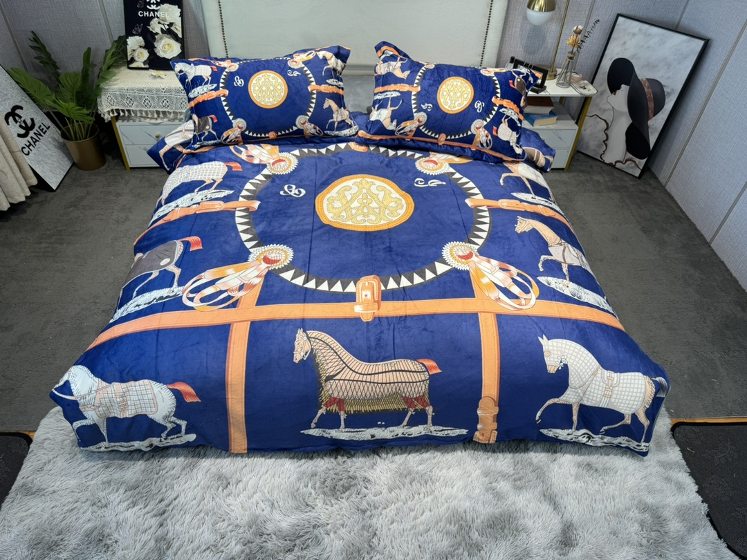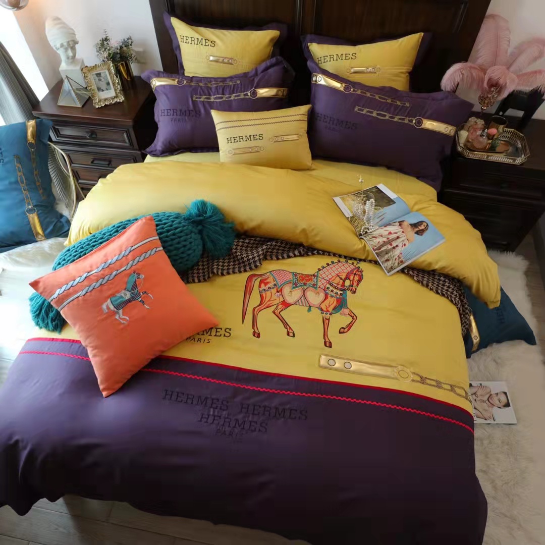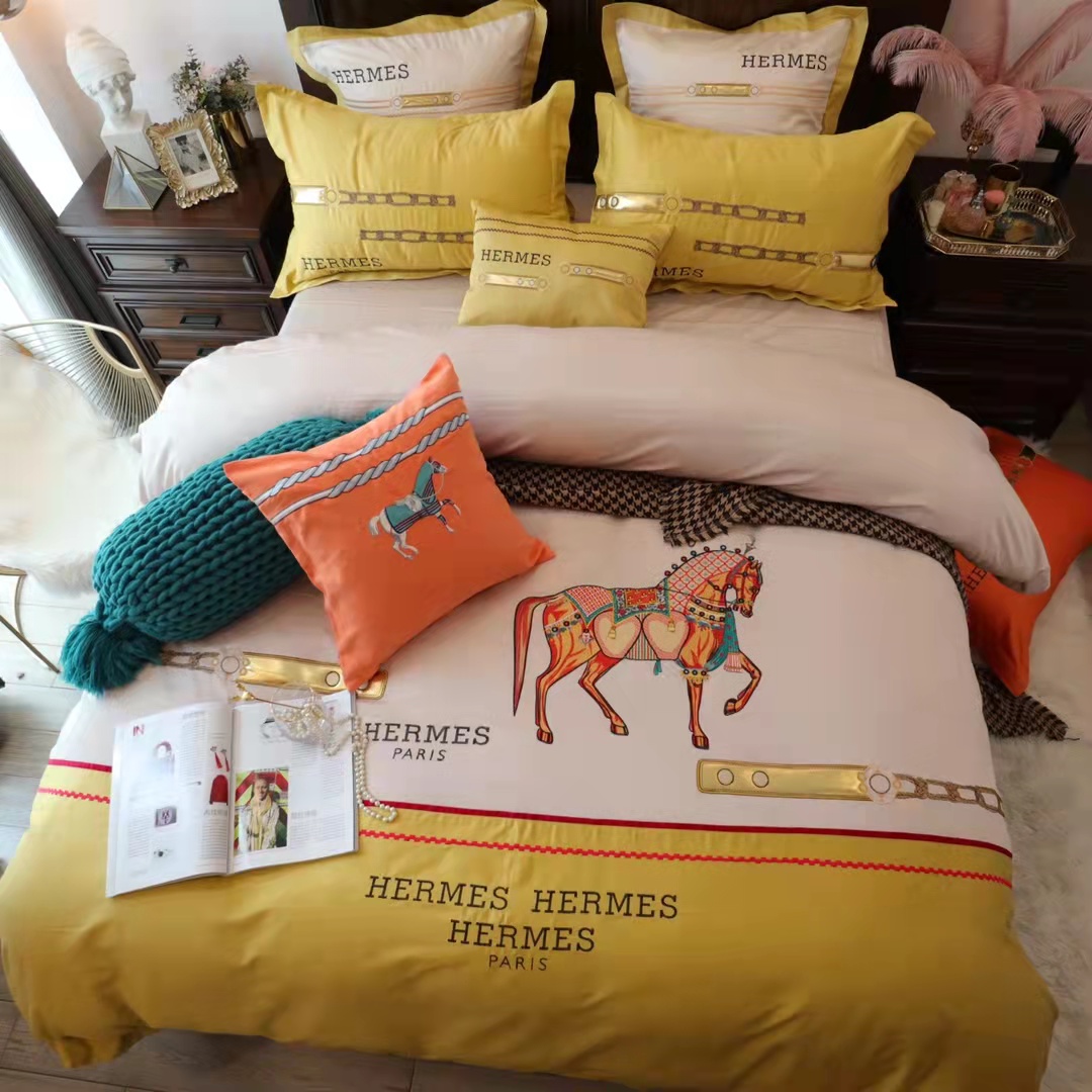 エルメス 寝具 HERMES 2022春夏新作 洋式 布団カバー ベッドシート 枕カバー 4点セット he220216p38-1