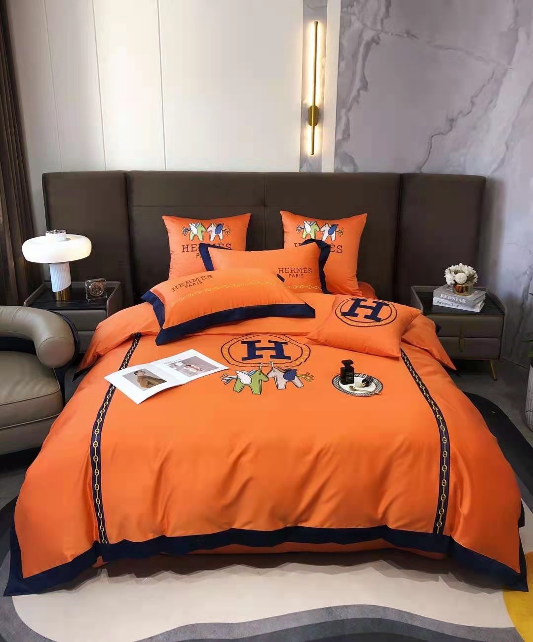 エルメス 寝具 HERMES 2022春夏新作 洋式 布団カバー ベッドシート 枕カバー 4点セット he220215p36-2