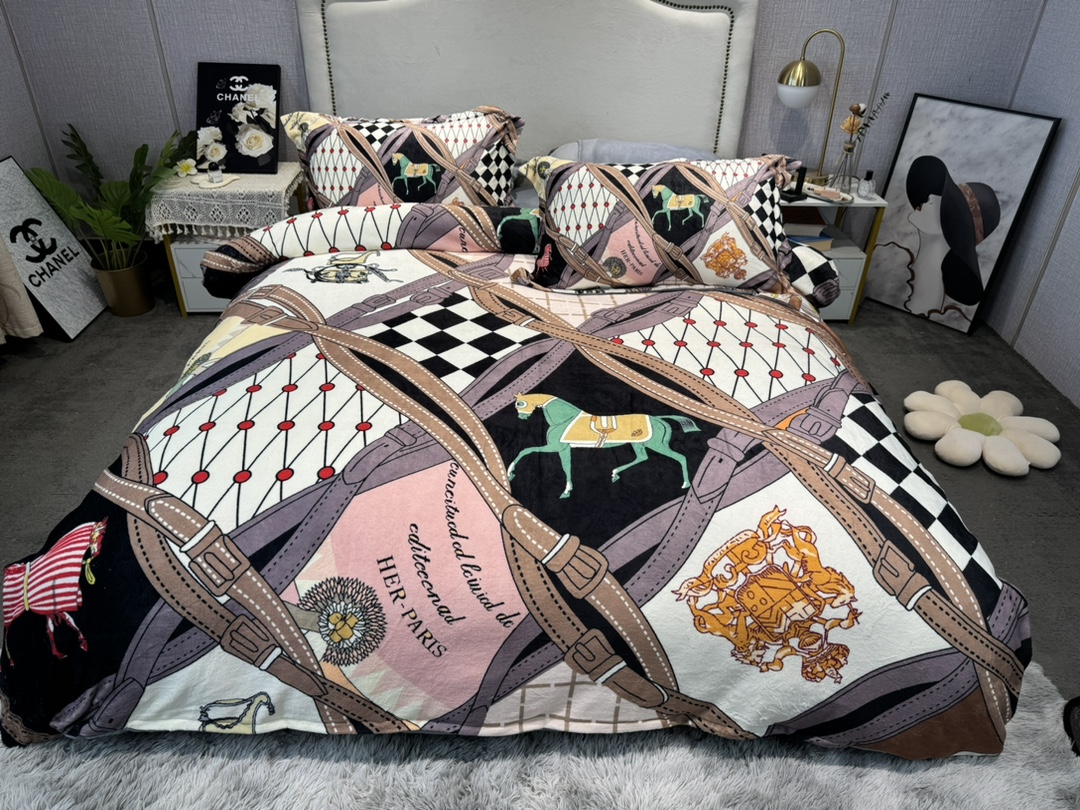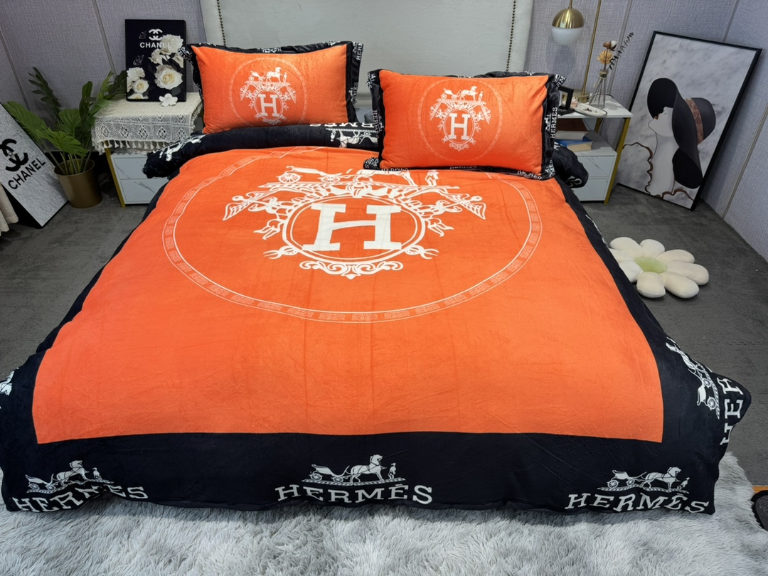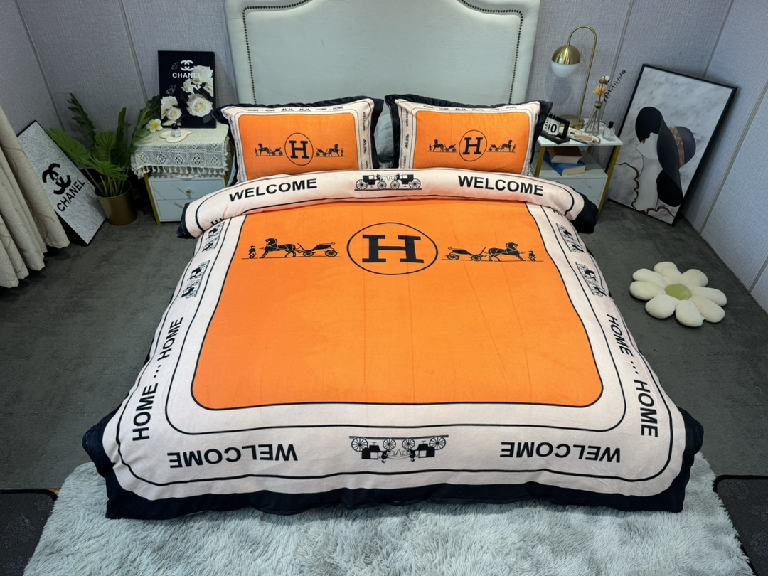 ブランド寝具 エルメス寝具HERMES ミルクレープ4点セット ふんわりとした柔らかさ モチモチ保温 冬