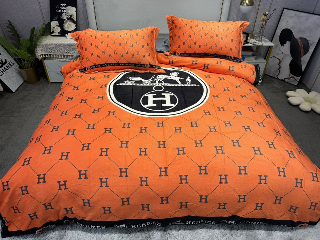 エルメス 寝具 HERMES 2022新作 洋式 布団カバー ベッドシート 枕カバー 4点セット he220215p39