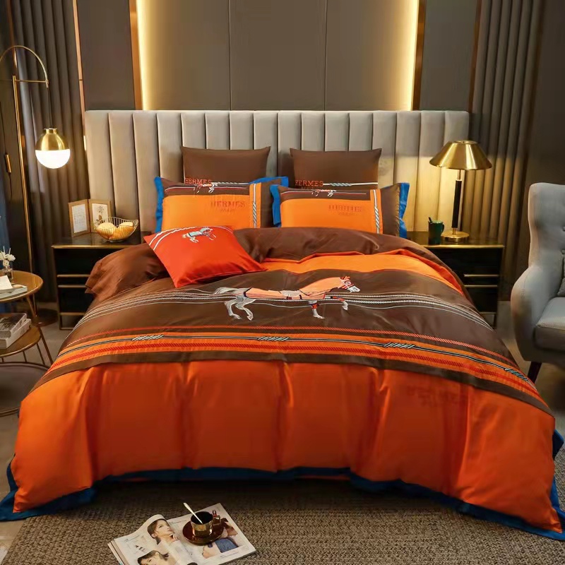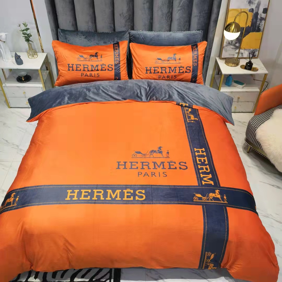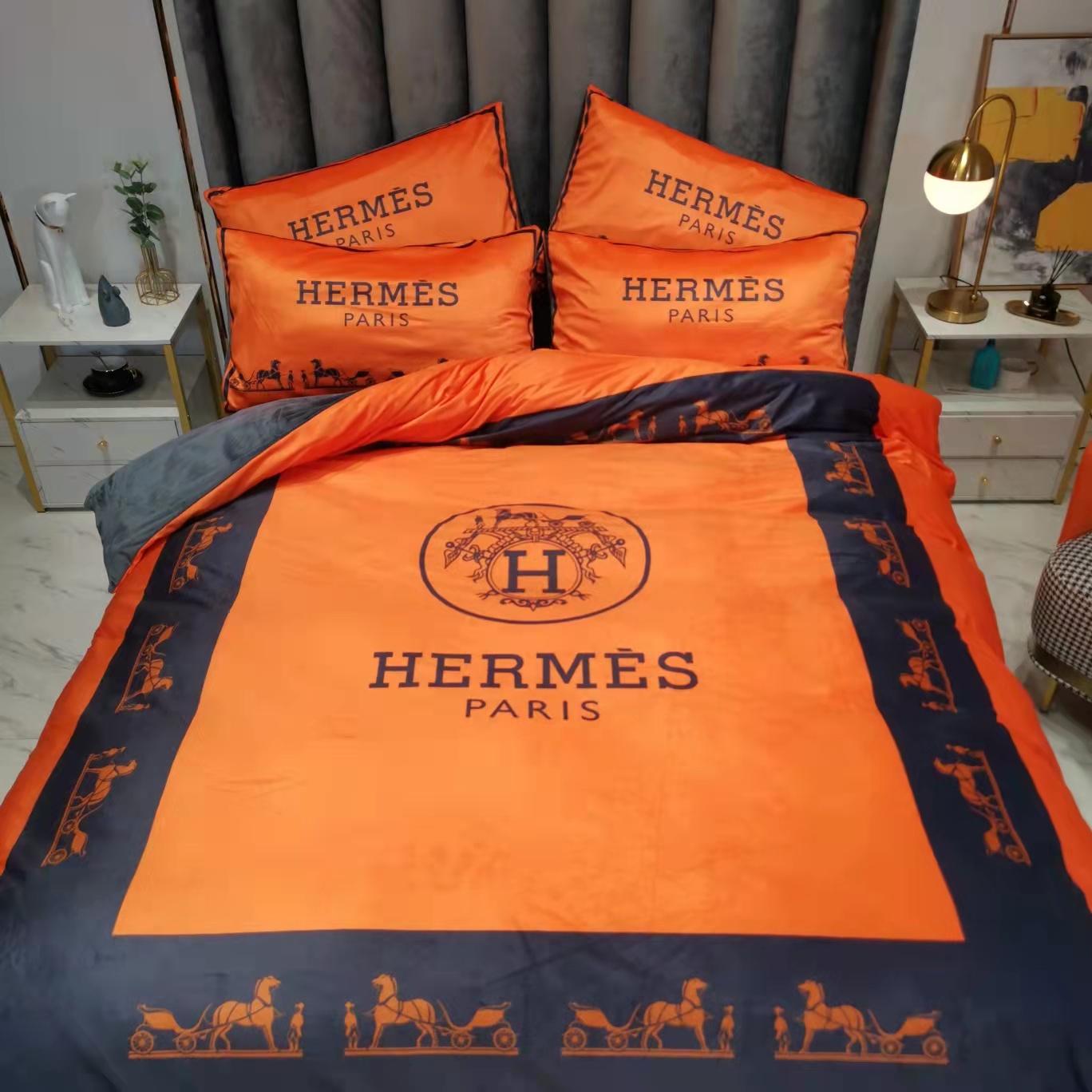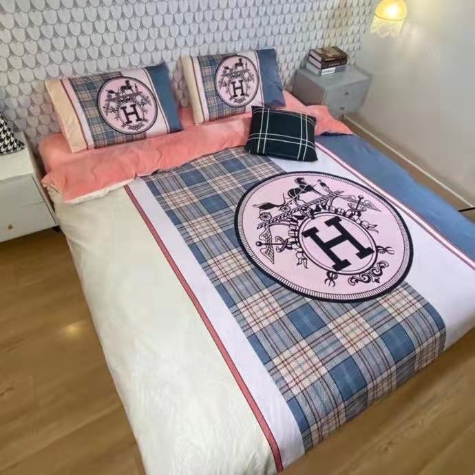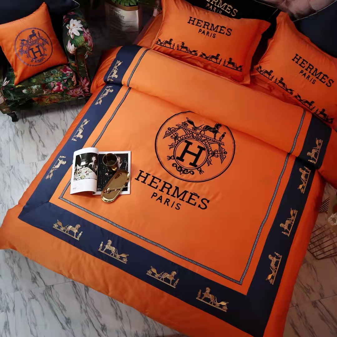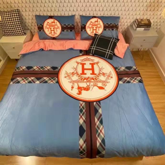 エルメス 寝具 HERMES 2021新作 洋式 布団カバー ベッドシート 枕カバー 4点セット ブランド寝具-1