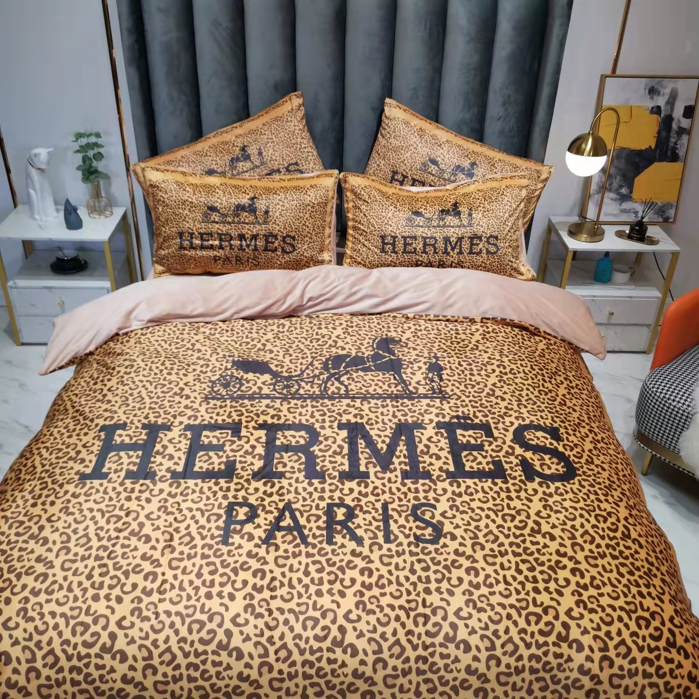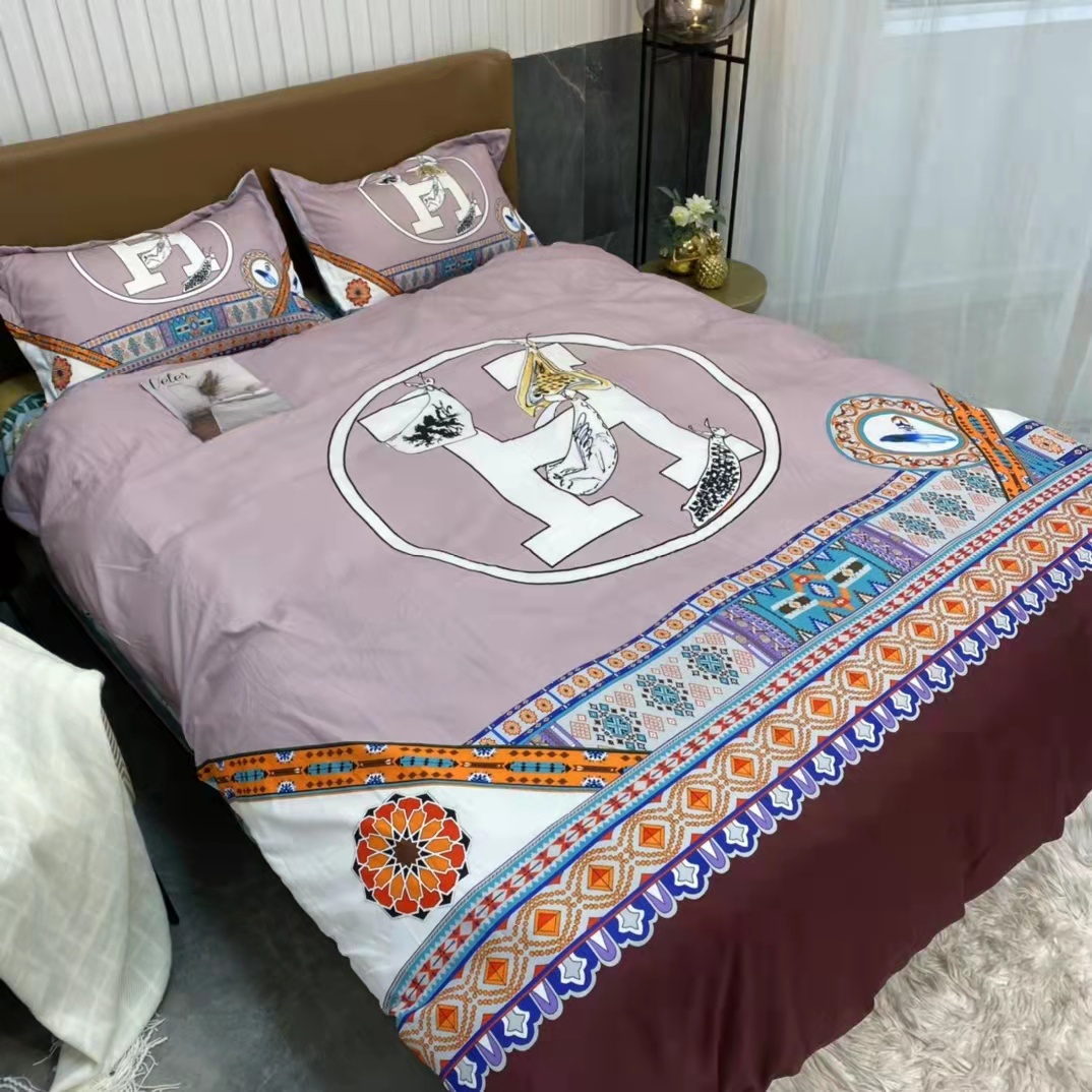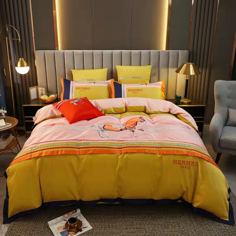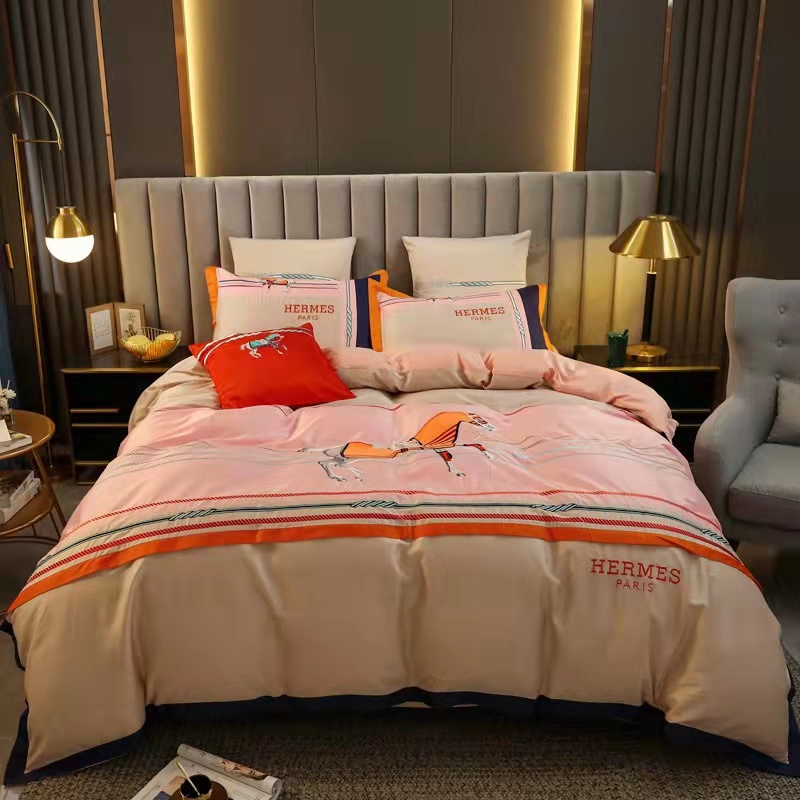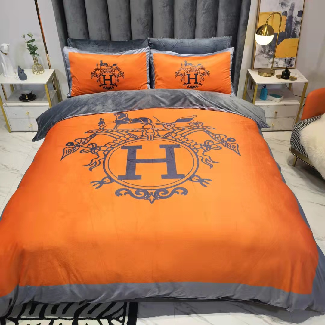 エルメス 寝具 HERMES 2021新作 洋式 布団カバー ベッドシート 枕カバー 4点セット ブランド寝具-1