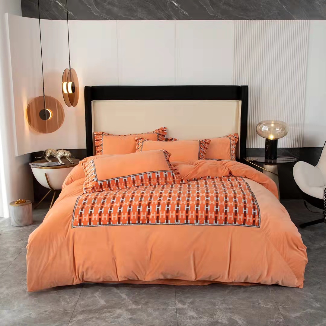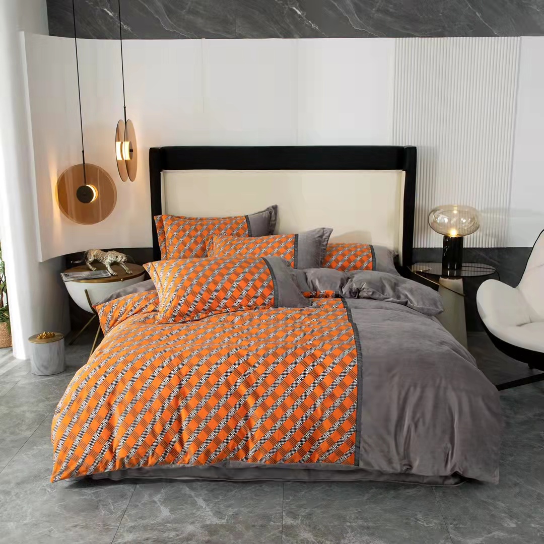 エルメス 寝具 HERMES 2021秋冬新作 洋式 布団カバー ベッドシート 枕カバー 4点セット ブランド寝具-1