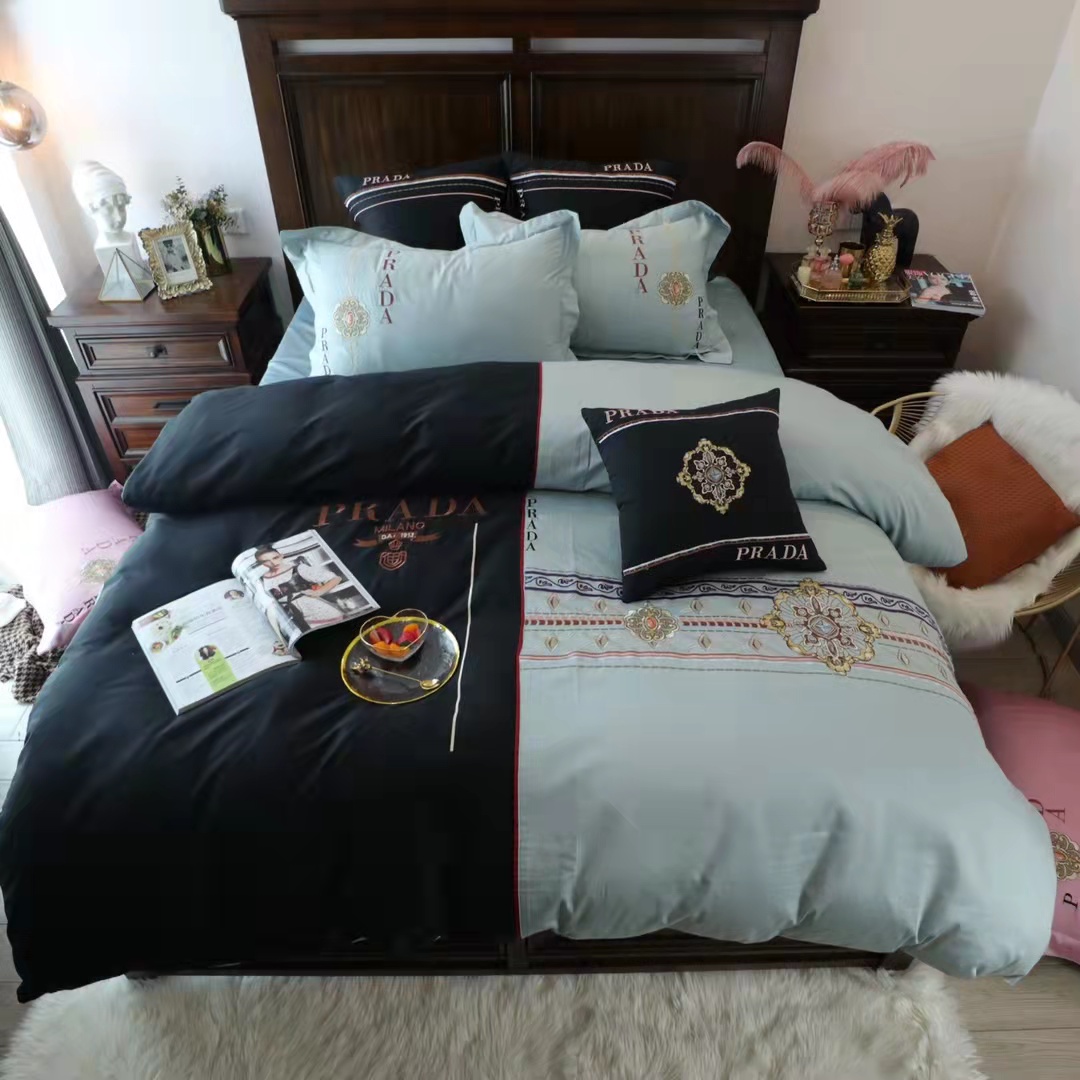 プラダ 寝具 PRADA 2021秋冬新作 洋式 布団カバー ベッドシート 枕カバー 4点セット 有名ブランド寝具