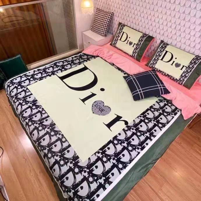 ディオール 寝具 DIOR 2021秋冬新作 洋式 布団カバー ベッドシート 枕カバー 4点セット ブランド寝具-1